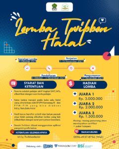 Islamsantun.org- Dalam rangka menyemarakkan literasi halal dan menumbuhkan kesadaran halal bagi masyarakat Indonesia, Badan Penyelenggara Jaminan Produk Halal (BPJPH) Kemenag RI bekerjasama dengan Pusat Pengkajian Masyarakat dan Pendidikan Islam Nusantara (PPM-PIN) UIN Raden Mas Said Surakarta mengadakan lomba literasi halal. Kegiatan lomba ini didukung oleh Bank Rakyat Indonesia (BRI), Paragon Corporation, dan Bank Syariah Indonesia (BSI).