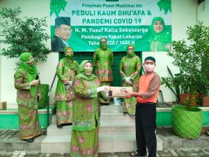 Di tengah himpitan ekonomi akibat pandemi, PP Muslimat NU membagi Paket Lebaran kepada masyarakat terdampak wabah Covid-19. Kegiatan ini merupakan kerjasama antara PP Muslimat NU dengan Bapak H.M. Jusuf Kalla (JK). “Kami mendapat bantuan sebanyak 2.800 Paket Lebaran dari Bapak Jusuf Kalla yang kami bagikan kepada para korban berdampak Covid-19 yang ada di wilayah Jabodetabek” Demikian kata Andi Nurhiyari Jamaro sebagai ketua tim kerjasama PP Muslimat NU dengan pihak JK.